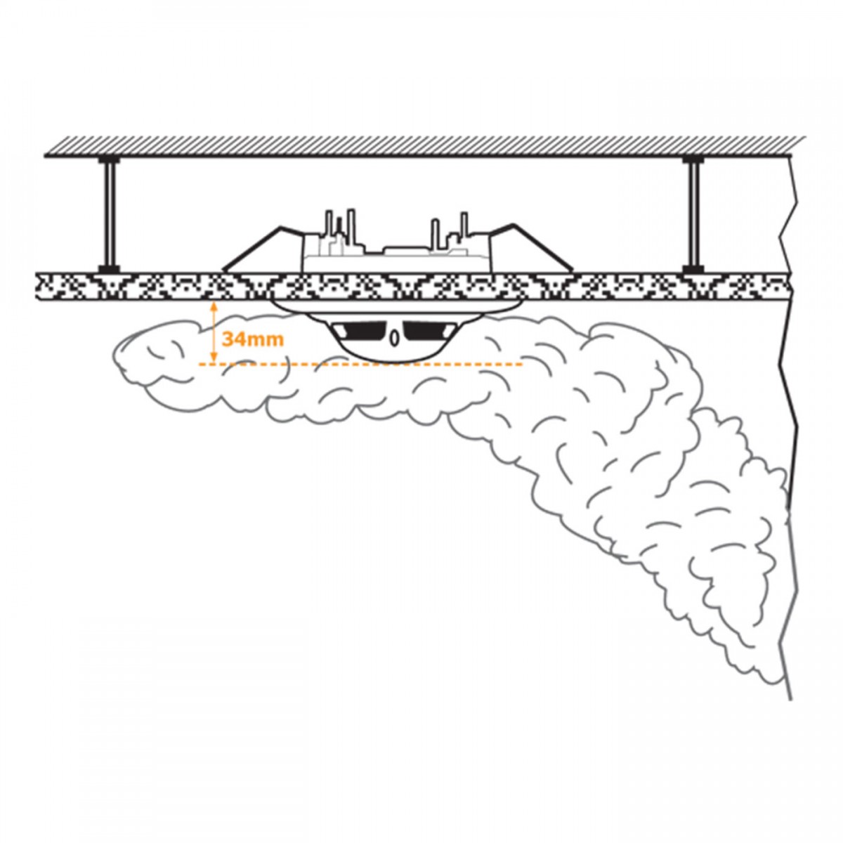 Asma tavan ünitesi; konvansiyonel veya akıllı adresli yangın dedektörlerinin taş yünü, alçıpan, metal vb. tüm asma tavan çeşitlerine montajında; sarkma veya bozulmaları engellemek ve mimari bütünlüğü sağlamak amacıyla kullanılmaktadır. ABS yapıda ve dedektörler ile aynı renk ve malzemeden yapılmıştır. Ünite, asma tavan malzemesine en az iki paslanmaz metal kulakçık ile sıkıştırma prensibi ile monte edilmektedir.